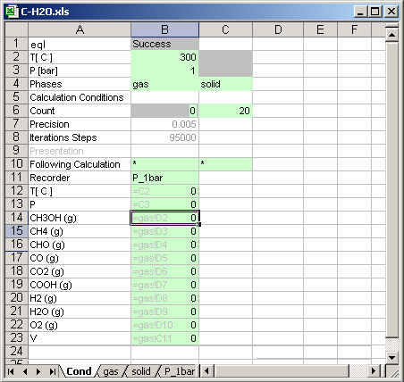 Cell [B3]=1 calculations are carried out for 1 bar.