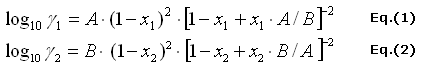 There are Eq.(1) the activity coefficients of ethanol and Eq.(2)