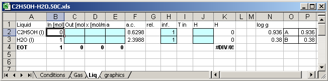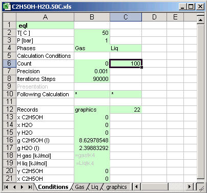 The C2H5OH-H2O.50C.xls contains 4 sheets: conditions, Gas, Liq and