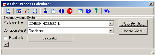 This example shows the sheets of the MS Excel file to plot state diagrams using the empirical equations of activity coefficients in the application AsTher Process Calculator.